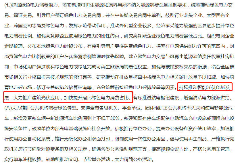 5月5日,重庆市发改委在《重庆市促进绿色消费实施方案(征求意见稿)》同样提到,持续推动智能光伏创新发展,大力推广建筑光伏应用,加快提升居民绿色电力消费占比。